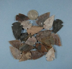 20 PIECE ARROWHEAD SPEARHEAD LOT COLLECTION & OLD VINTAGE 1934 BUFFALO NICKEL