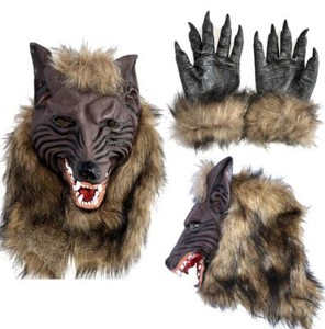 Halloween Wolf Head Face Mask Werewolf Claw Gloves Cosplay Costume Horror Props