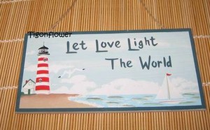 Wood Sign Plaque Decor Country LIGHTHOUSE beach Let Love Light the World