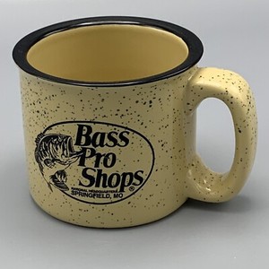 Bass Pro Shops Mug Yellow Brown Heavy Ceramic Coffee Tea Cup Black Rim Speckles
