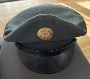 Vintage Officer Lieutenant Military Uniform Hat Size 7 Dark Green Wool Cap wSeal