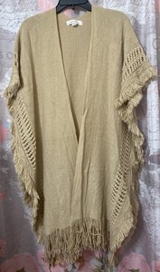 FRANCESCA’S One Size Beige Poncho Wrap With Fringe & Crochet 100% Acrylic