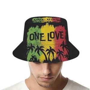 Fisherman Bucket Hat One Love Rasta Weed Cap Fishing Outdoor Cotton