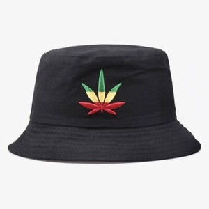 Fisherman Bucket Hat Pot Leaf Weed M/L Embroidered Cap Fishing Outdoor Cotton