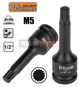 Douille embout Spline XZN M5 à CHOCS long carré 1/2" L78mm Cr-Mo RICHMANN C1621