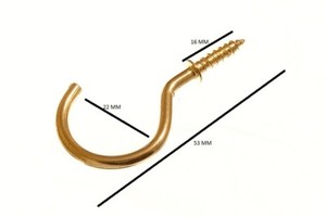Cup Hook Screw In Unshouldered Total Length 50mm Brass Plated With Pack 20