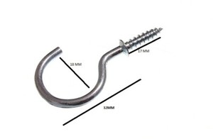 Cup Hook Screw In Unshouldered Total Length 38mm Chrome Cp With Pack Size 10