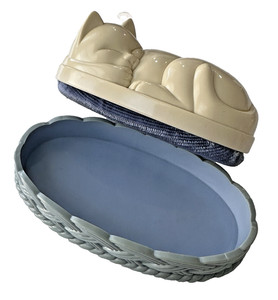 VTG 1970s Avon Cozy Kitty Lint Brush Hair Remover Ivory Sleeping Cat Blue Basket