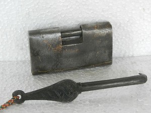 Vintage Solid Heavy Handforged Rectangular Strip System Padlock , Nice Patina