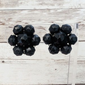 Vintage Clip On Earrings - Beaded Black Flower Like Just Under 1"