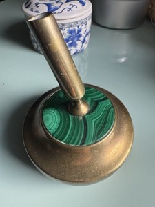 Vintage Marked GIBSON brass and Malachite fountain Pen Holder