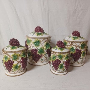 Vtg KK China Majolica Pottery 3D Grape Cluster Ceramic Canister Set