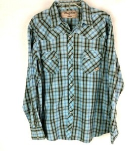 Wrangler Wrancher Vintage Western Pearl Snap L/S Shirt - Men's XL Blue Plaid