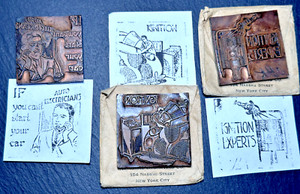 THREE AUTOMOTIVE ADVERTISING ELECTROTYPE PRINTING BLOCK IGNITION STAMPS E201