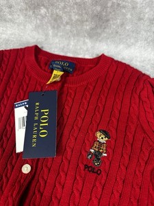 Polo Ralph Lauren Girls 6x Red Knit Cardigan Sweater Bear Red NWT
