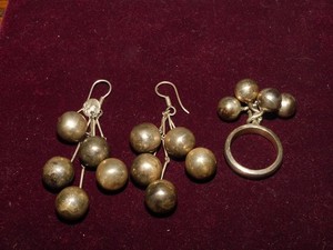 Vintage Sterling Silver Modernist Ring & EARRINGS Multi Cluster Balls SIZE 9