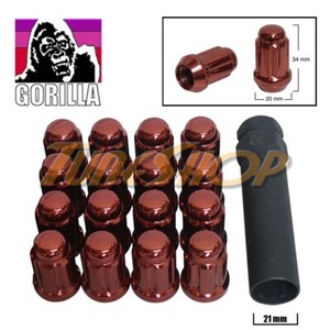 20 GORILLA SPLINE TUNER LOCK LUG NUT 12X1.5 1.5 ACORN WHEELS RIMS RED CLOSE T