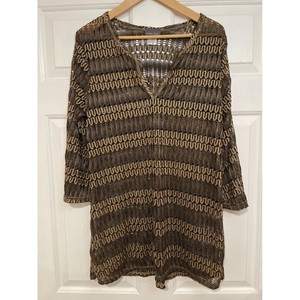 Jordan Taylor Cover Up Knit Open Weave Brown Gold Tunic Top M Flared Sleeve