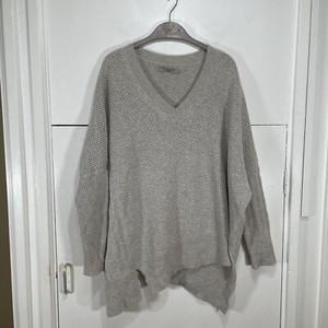 All Saints Riley Jumper Grey V Neck Relaxed Side Slits Poncho Asymmetric Size M