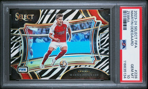 Martin Odegaard 2023-24 Panini Select FIFA #228 Field Zebra Prizm /25 PSA 10