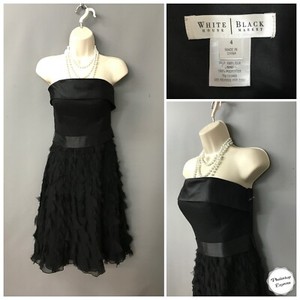White House Black Market Black Silk Ruffled Strapless Occasion Dress UK 8 US 4