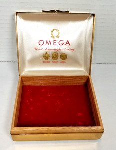 Vintage Omega Metal Gold Tone Watch Box With Wood & Red Velvet Inner Box Only
