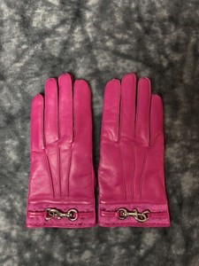 Woman’s Pink Coach Leather Gloves Winter Sliver Hardware Cut Tag