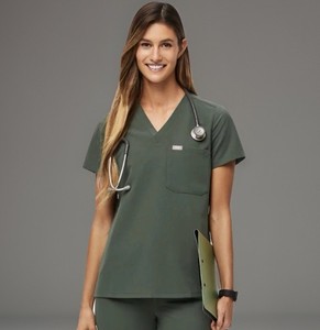 FIGS Scrub Top Womens Small Khaki Olive Green Catarina One Pocket Short Sleeve