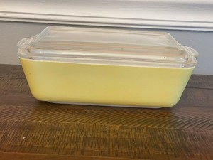 PYREX PRIMARY COLORS YELLOW REFRIGERATOR DISH WITH LID VINTAGE 0503 7”x 9.5”