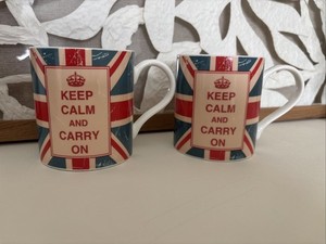 Set Of 2 Kent Pottery Keep Calm and Carry On Ceramic Mugs 12 Oz British Flag