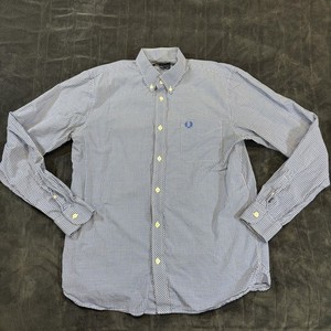 Fred Perry Shirt Mens Medium Blue White Gingham Button Down Long Sleeve Cotton