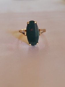 Vintage 10K Gold Bloodstone Ring MARQUISE CUT Cabochon, Size 8