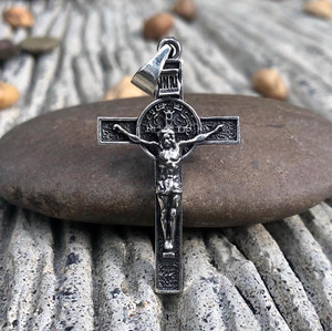 Handcrafted 925 Sterling Silver Saint Benedict Cross Christian Crucifix Ring