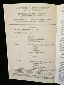 GRANT JOHANNESEN piano - Program Mar 1991 - Westchester, Purchase NY w/ TYPO!