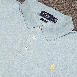 Ralph Lauren Polo Shirt Mens Large Blue Casual Golf Yellow Pony Classic Fit