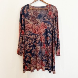 Soft Surroundings Top Womens 2X Black Floral Asymmetrical Hem Boho Tunic Flowy
