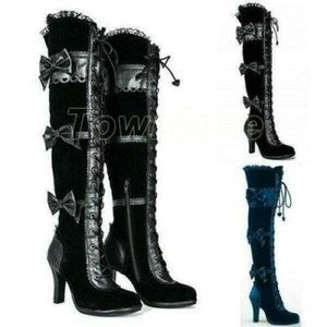 Womens Lace Up Thigh High Pirate Boots Steampunk Victorian High Heel Gothic Tall