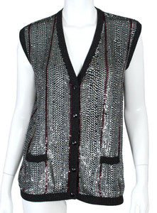 VALENTINO Vintage Multicolor Sequined Plaid Knit Button-Front Sweater Vest M