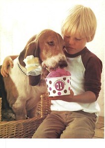 1982 Baskin Robbins Ice Cream Vintage Print Ad Boy with Dog Eating Ice Cream