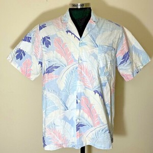 Vintage Malihini Hawaii Hawaiian Button Up Shirt XL Blue Floral Tiki USA Made