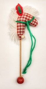 Vintage Christmas Hobby Horse Stick Ornament Red Plaid