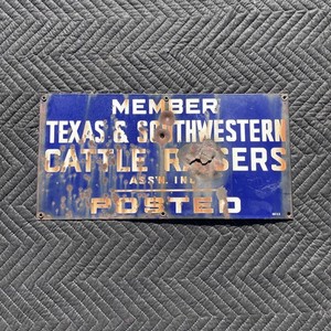 Texas & Southwestern Cattle Raisers POSTED Porcelain Sign 20” x 10” Vintage