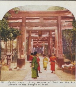 Toril Ave Temple of Inari Kyoto Japan Antique Color Stereoview Stereoscope Card