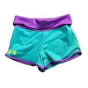 Under Armour Girls Hyper Rollover Shorts Aqua and Purple Size Medium