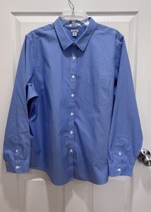 LL BEAN Shirt Womens 2X Blue White Stripe Wrinkle Free Long Sleeve Office Preppy