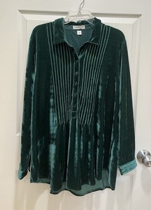 COLDWATER CREEK Green Velvour Popover Top Women 2X Pintuck Long Sleeve
