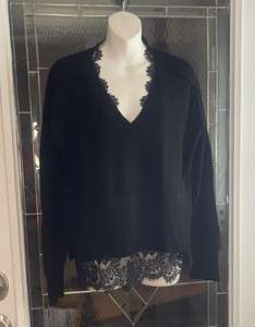 Acrobat Size L Black Sweater Lace Trim Wool Cashmere Viscose Nylon Blend