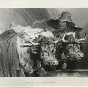 Sir Edwin Landseer Engraving Print Antique 1880 - Oxen at the Tank Geneva