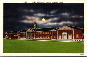 Vtg 1930s High School at Night Bristol Tennessee TN Unused Linen Postcard