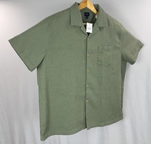 J CREW Button-Up Shirt Mens 2XL Green SS Casual Modern Relaxed Cotton Flex NEW
